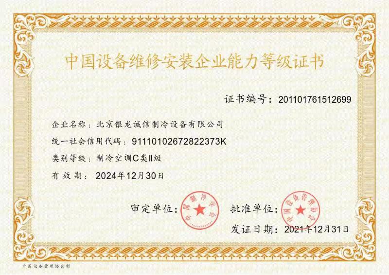 2007年:獲準成為北京市制冷行業(yè)技術(shù)學會理事單位; 2009年:獲得北京市大興區(qū)百強企業(yè)認證; 2009年:獲得國家高新技術(shù)企業(yè)認證; 2011年:獲北京市安全生產(chǎn)先進企業(yè)稱號,節(jié)能環(huán)保先進單位; 2012年:通過了國家高新技術(shù)企業(yè)復(fù)審; 2013年:公司董事長獲"2013北京先進企業(yè)家"榮譽稱號; 2014年:獲2014年度中國冷庫工程安裝設(shè)計造價行業(yè)十大品牌;